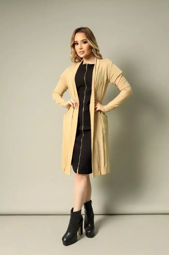 Destaques do Cardigan Ravane: - Tecido confortável e durável - Modelagem que valoriza o corpo sem apertar - Versatilidade para looks do dia a dia ou eventos especiais