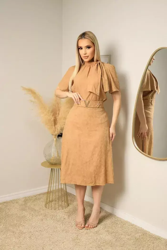 Detalhes que encantam: o top possui alças delicadas e um corte que realça o busto, enquanto a saia complementa o look com seu caimento fluido e comprimento ideal para qualquer estação.